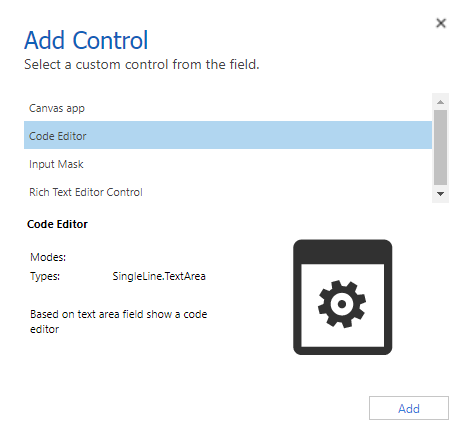 6. The Add Control window is opened, Select Code Editor and click on Add button.