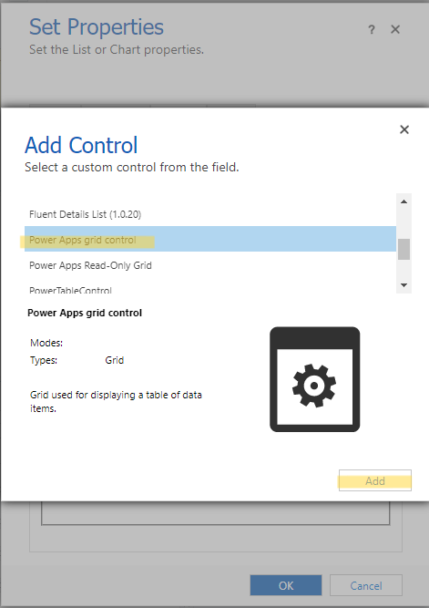1.Inside the subgrid properties click on Controls tab and then click on Add Control... ,select Power Apps grid control
