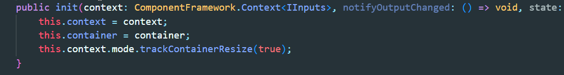 2. Initializing the properties declared in the step 1 and set trackContainerResize inside the init method.