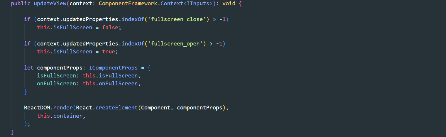 3. Inside the updateView method add the logic to identify if the view is on full screen mode.