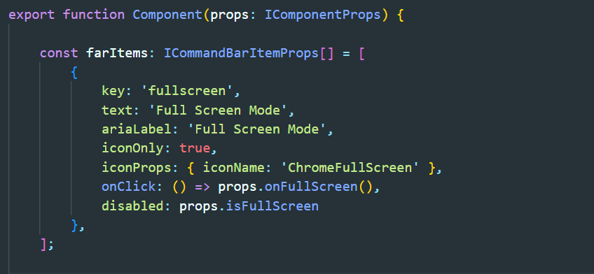 - componentProps: Pass the isFullScreen and onFullScreen properties to custom component.